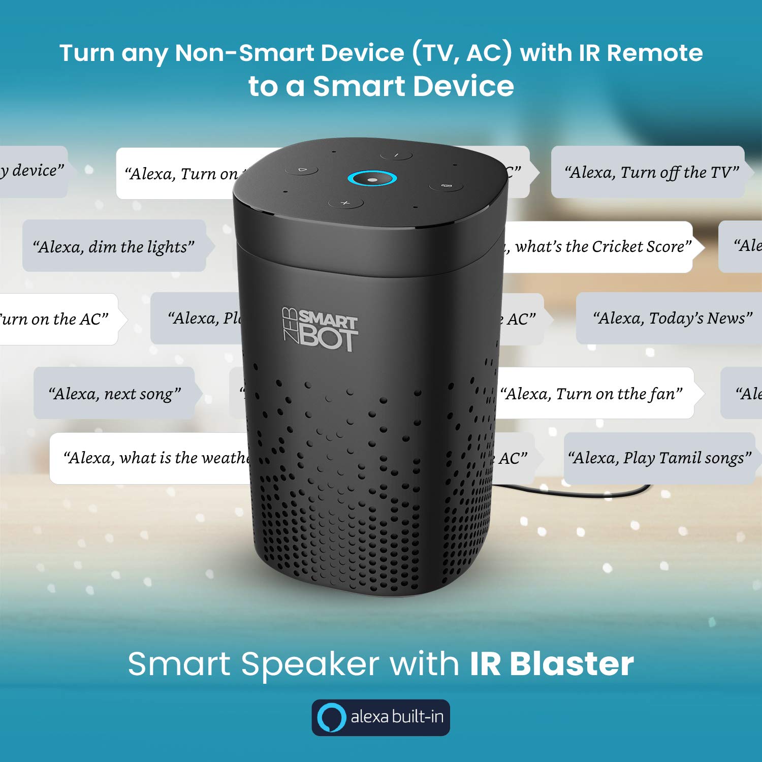 1 review for ZEBRONICS Zeb-Smart Bot 5W Wi-Fi Smart Speaker with Ir Blaster, Alexa Built-in, Works with iOS and Android Smartphones (Black)